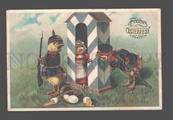 081168 Charming CHICKENS as German Guard Vintage EASTER