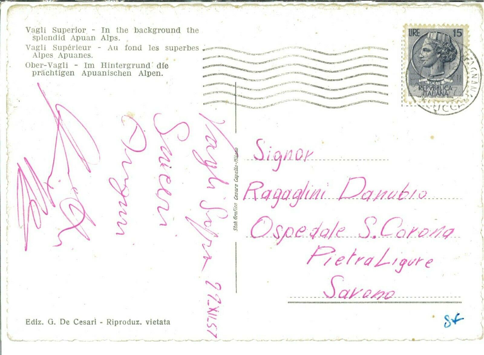 Comune: VAGLI SOPRA Provincia: Lucca Viaggiata: 1957, formato grande ___________________________________________________________ Metodi di Pagamento Carta Di Credito Bonifico Bancario e Postale Paypal Contrassegno ( ... Read More