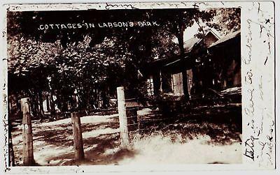Neat old post card picturing, "Cottages in Larson's Park. PM1910 from wisconsin vg condition. county