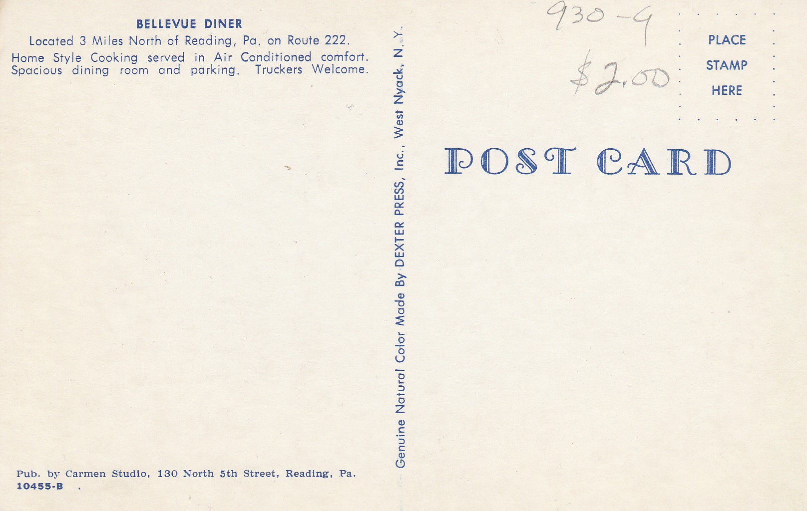 Bellevue Diner, Located 3 miles north of Reading, Pa, on Route 222Seller Information