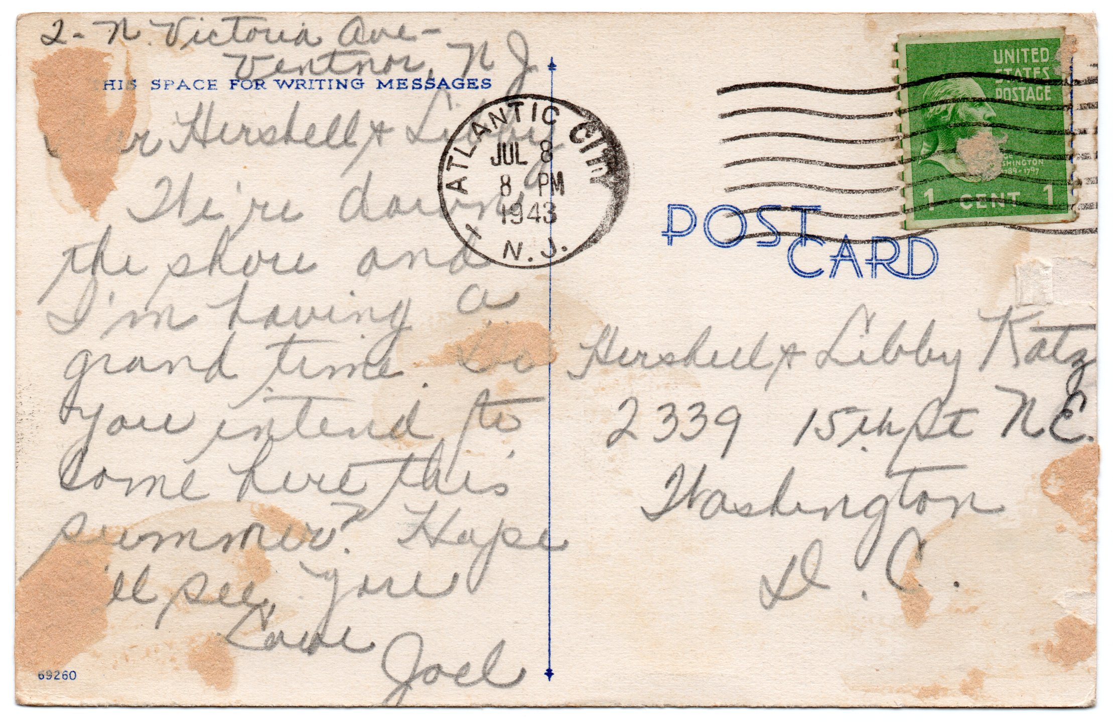 Comic Beach Bathing Card - "Oh! George Look at that Beautiful Seaside Development!" Posted from Atlantic City, July 8, 1943. Card has been gently removed from an album.