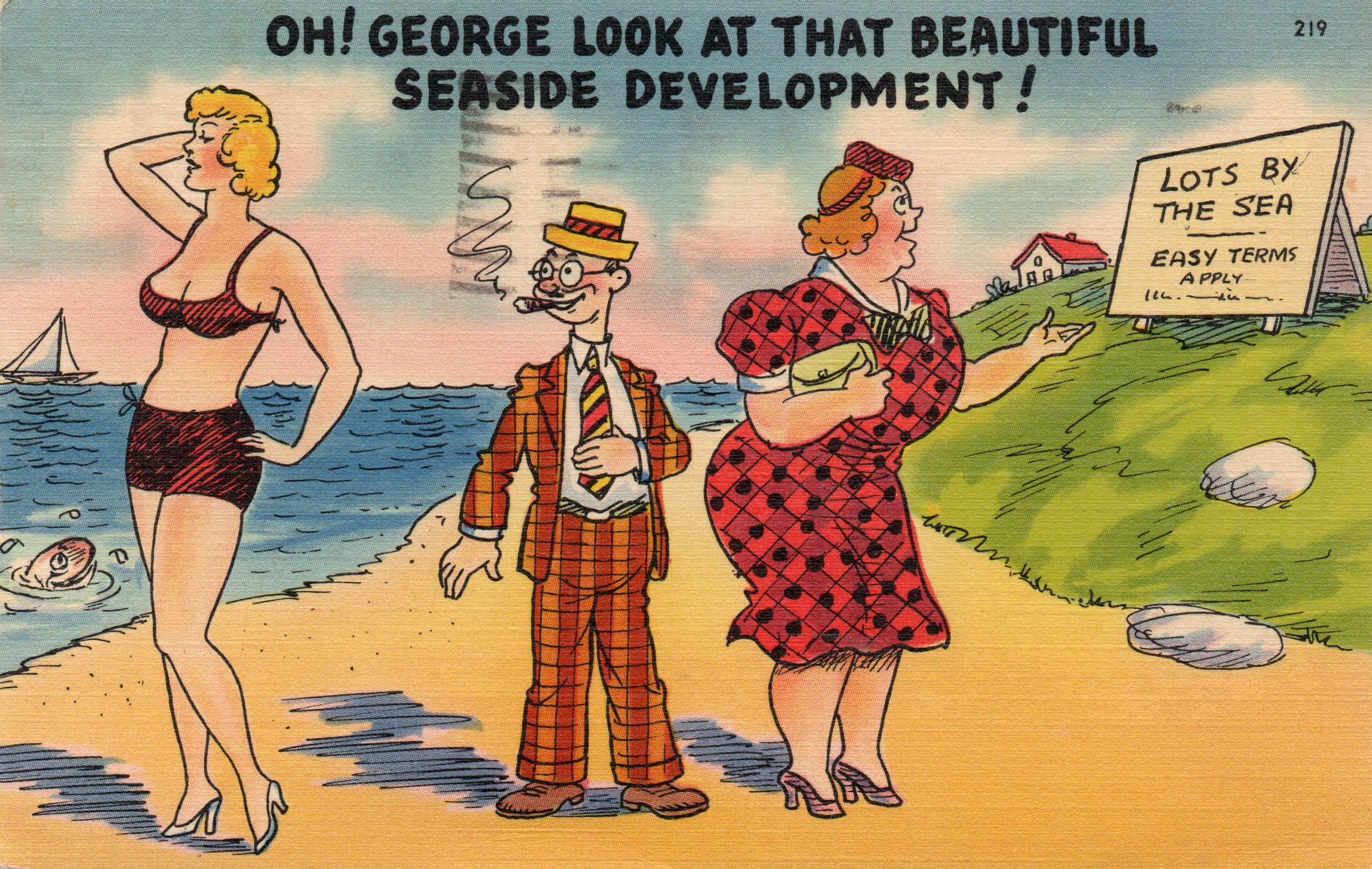 Comic Beach Bathing Card - "Oh! George Look at that Beautiful Seaside Development!"Posted from Atlantic City, July 8, 1943.