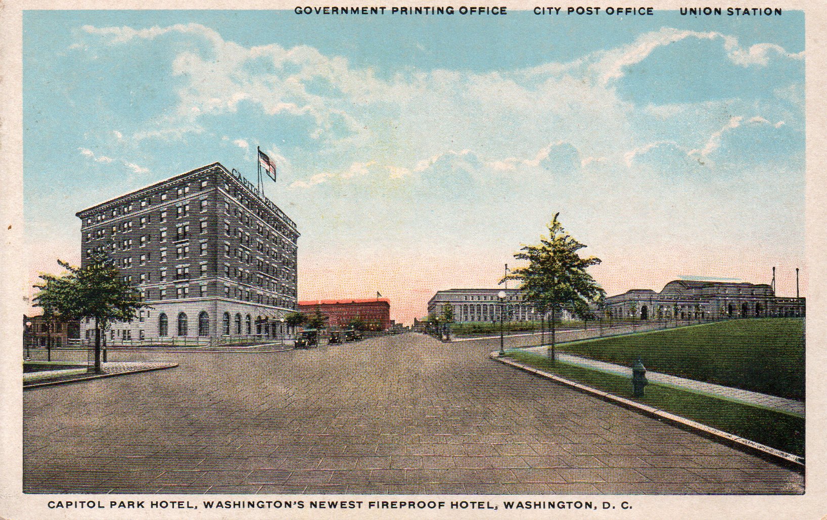 Capitol Park Hotel, Washington's Newest Fireproof Hotel, Washington, D.C.Showing Government Printing Office, City Post Office & Union Station