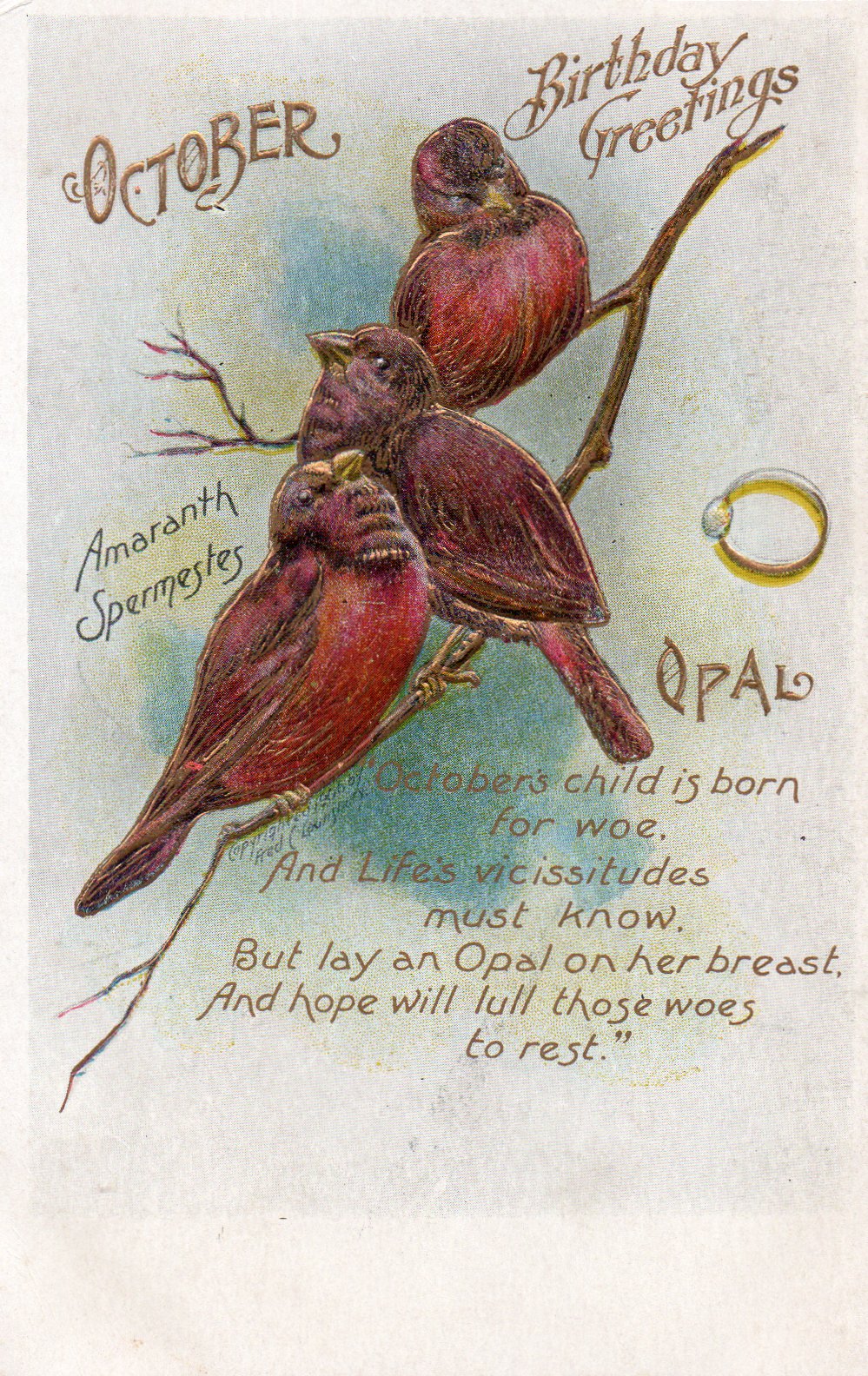 October Birthday Greetings Gold Highlighted Embossed Posted from Newark NJ, October 10, 1907