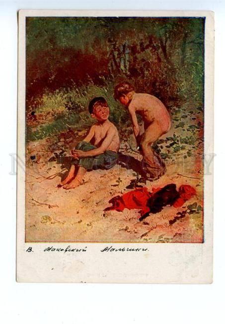141498 Boys after Bathing by MAKOVSKY OV old Russian PC