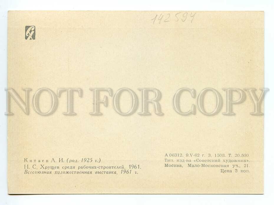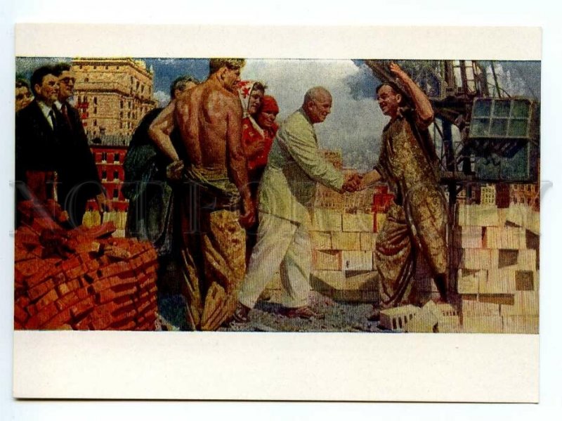 142594 USSR KHRUSHCHEV & Builders by KITAYEV old postcard