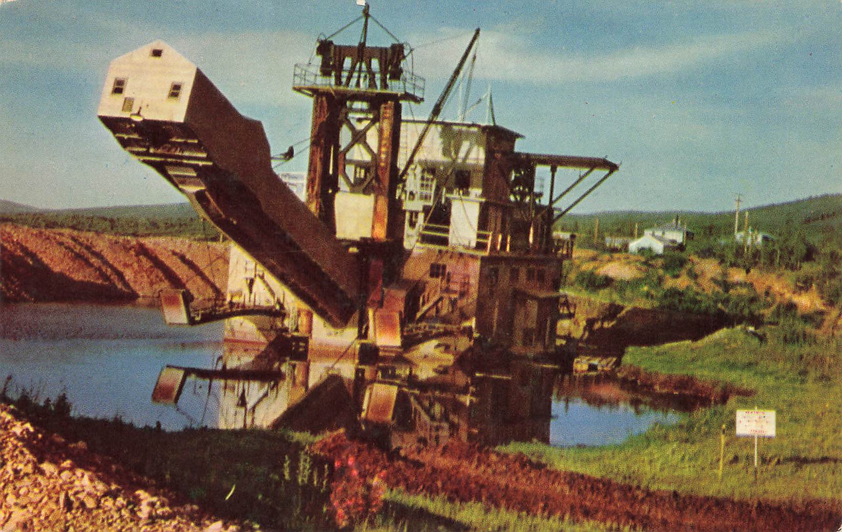 This is a nice vintage printed chrome postcard showing a mining gold dredger at Ester near Fairbanks, Alaska.