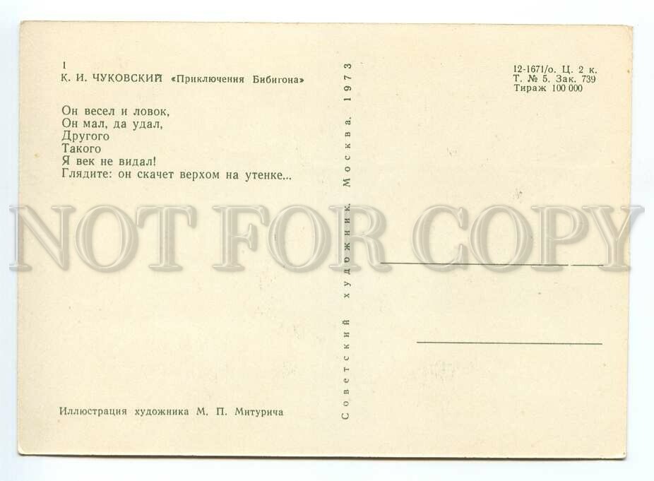 Chukovsky bibigon duck butterfly by miturich old rus pc Description: >>> Age: Original old postcard 1973 year >>> Approx.Size: 6X4 inches (15X10 cm) >>> Publisher: Sovetsky Khudozhnik - Soviet Painter - U ... Read More