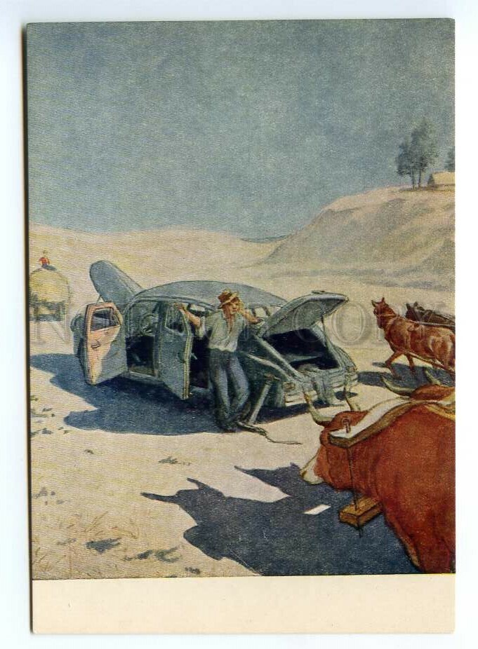 Fable broken old car by semenov old russian soviet pc Description: >>> Age: Original old postcard 1954 year >>> Approx.Size: 6X4 inches (15X10 cm) >>> Publisher: Sovetsky Khudozhnik - Soviet Painter - USS ... Read More