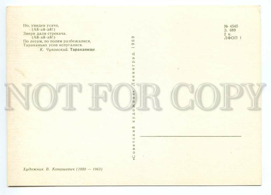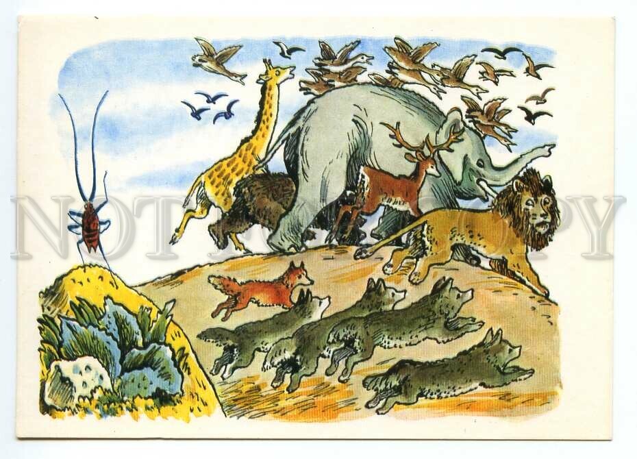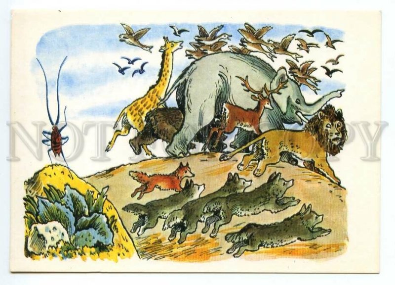 Giant roach lion & elephant fox wolf by konashevich old Description: >>> Age: Original old postcard 1969 year >>> Approx.Size: 6X4 inches (15X10 cm) >>> Publisher: Sovetsky Khudozhnik - Soviet Painter - U ... Read More