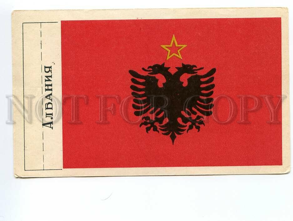 Albania Flag Old Paper Flag Card Description: >>> Age: Original old paper flag card 1957 year >>> Approx.Size: 6X4 inches (15X10 cm) >>> Publisher: POLIGRAPHIST Leningrad USSR Russia - total print 40000 > ... Read More