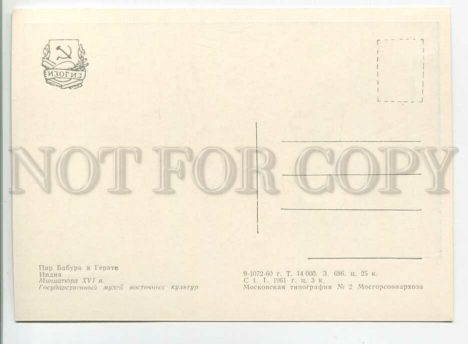 India Feast Babur in Heart Old Postcard Description: >>> Age: Original old postcard 1960 year >>> Approx.Size: 6X4 inches (15X10 cm) >>> Publisher: IZOGIZ - USSR Russia - total print 14000 >>> SERIES# S ... Read More