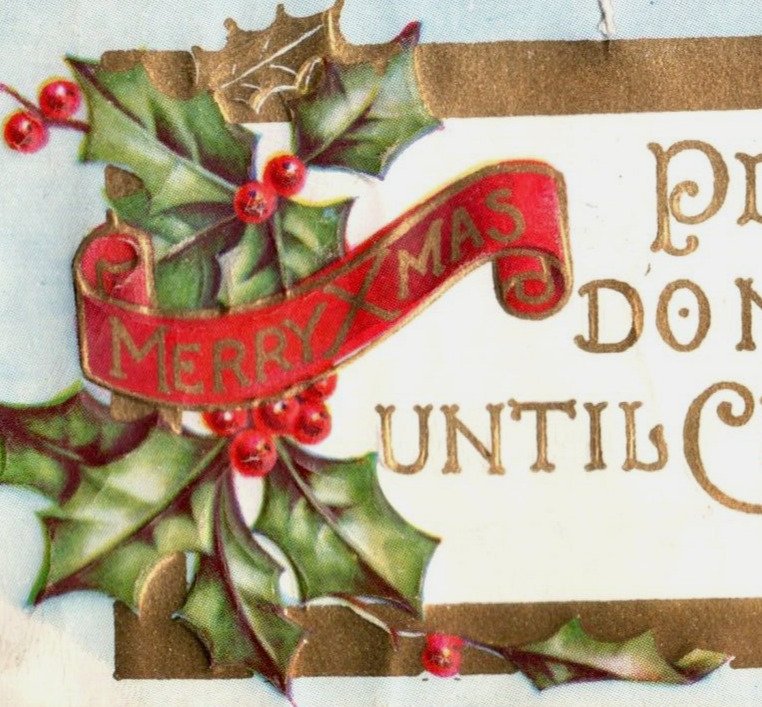 1880s-90s Embossed Victorian "Please Do Not Open Until Christmas" Label P84