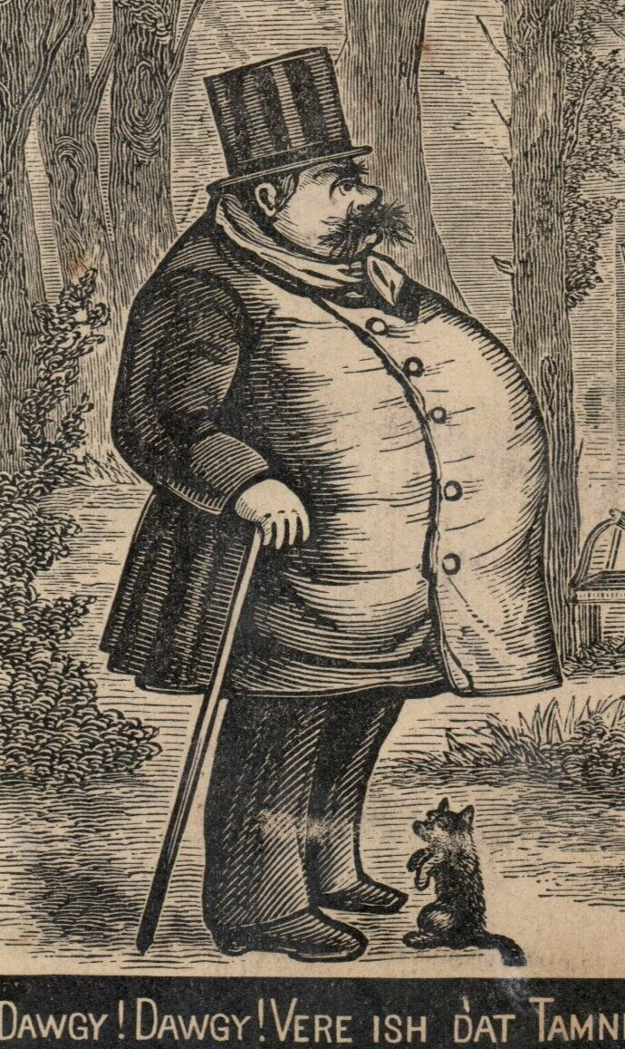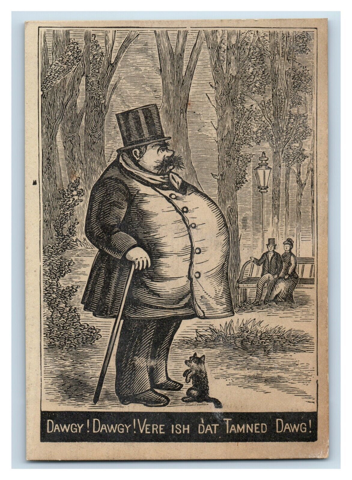 1880s Comical Victorian Trade Card Stout Man & Tiny Dog P135