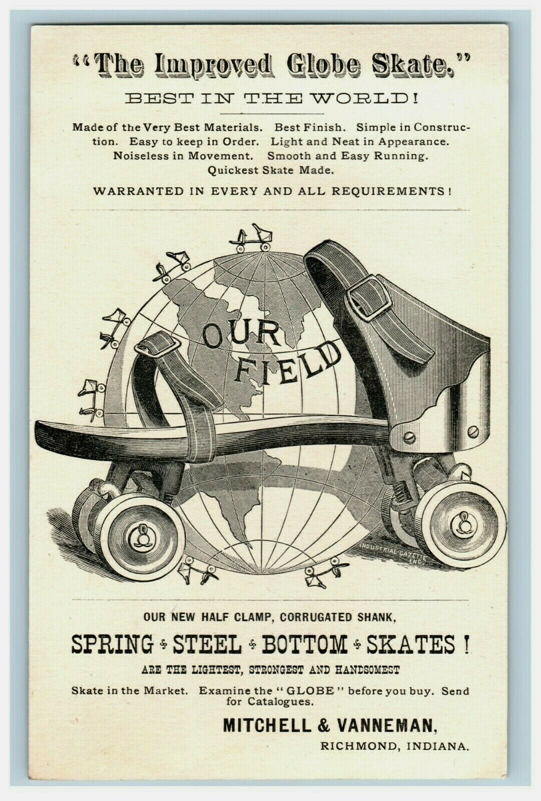 1880's Engraved Globe Skates Mitchell & Vanneman Richmond, IN A 7M