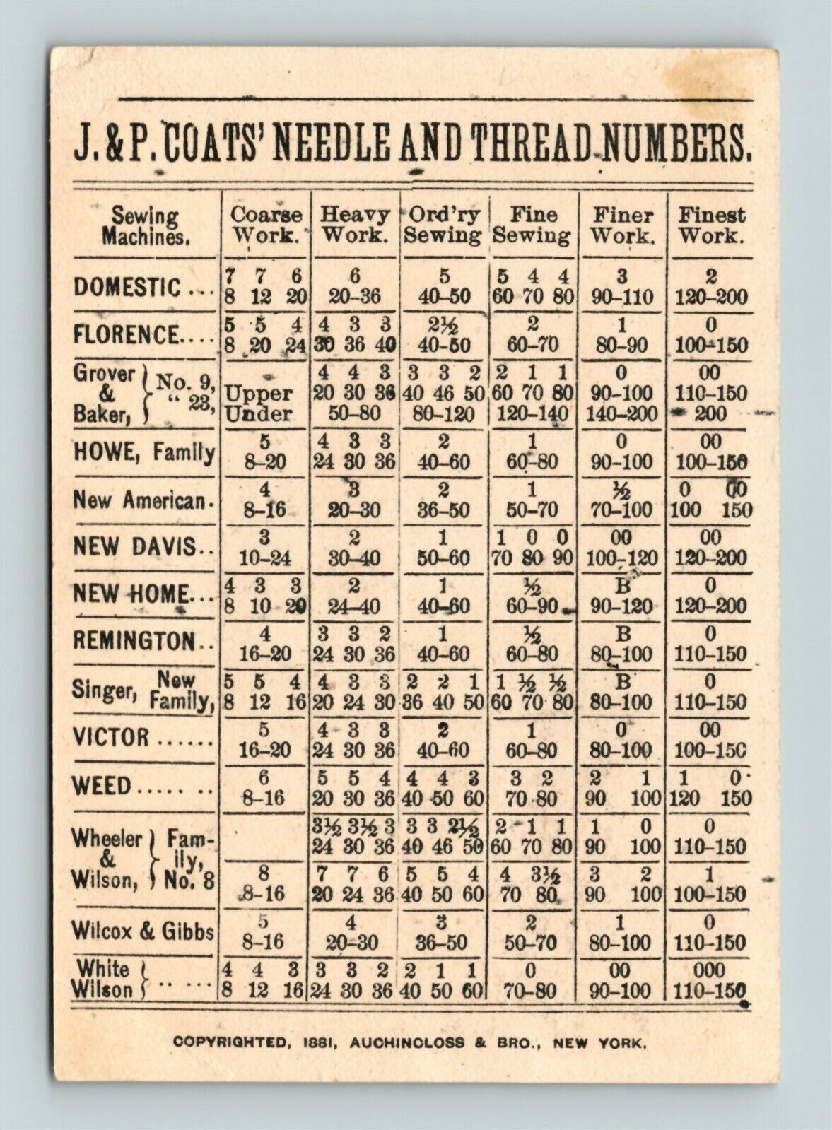 _1881 j&p coats children pulling cart needle thread number chart trade card_ Item Description: Description: 1881 J&P Coats Children Pulling Cart Needle Thread Number Chart Trade Card Size: 4 1/8 x 2 7/8 inch ... Read More