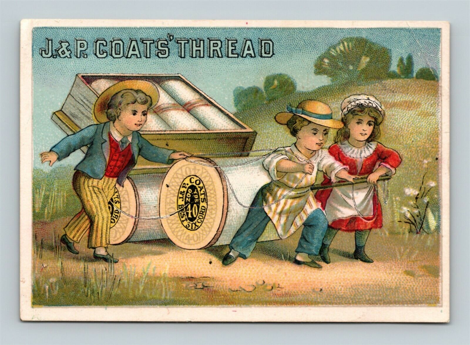 _1881 j&p coats children pulling cart needle thread number chart trade card_