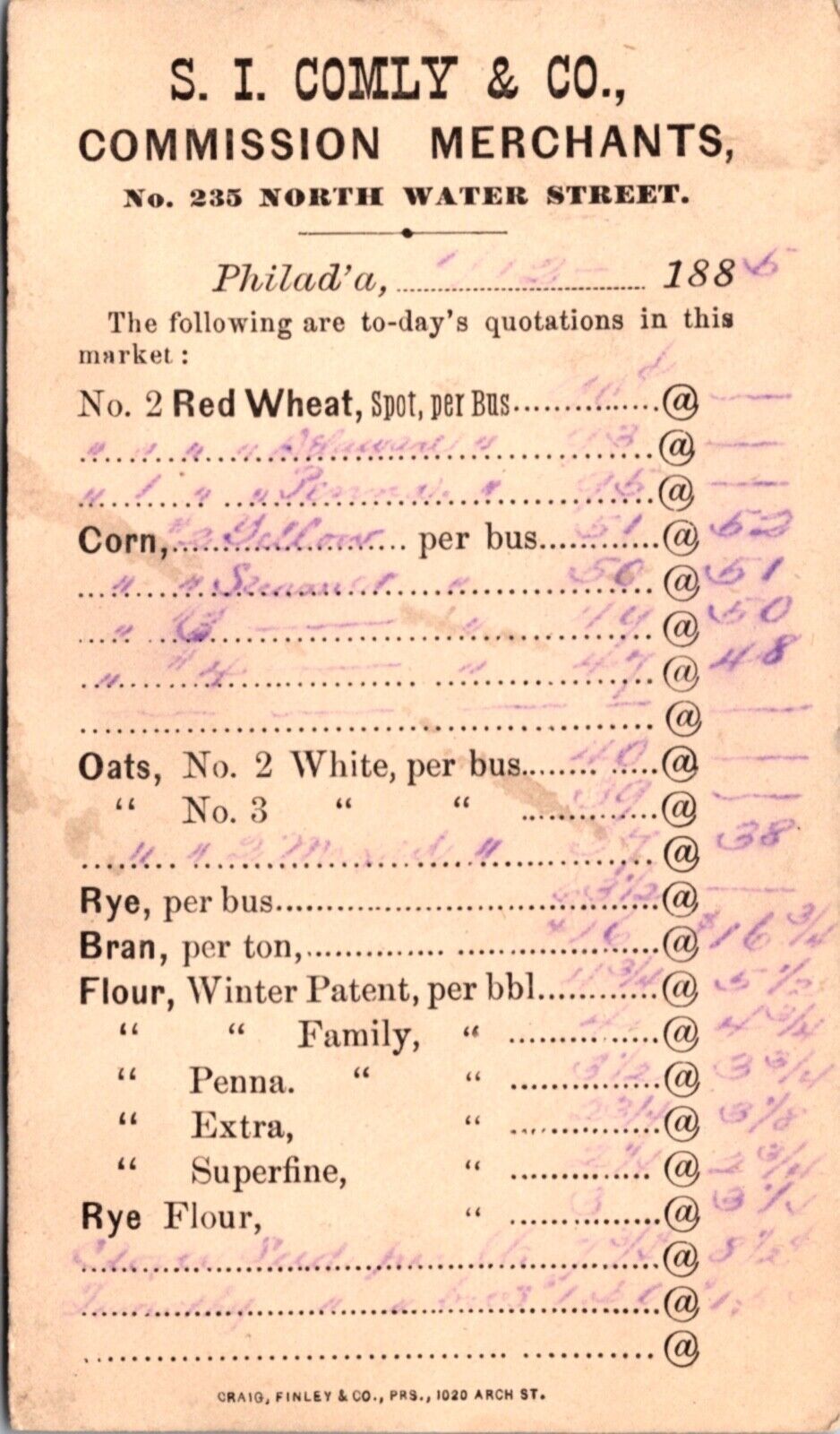 1885 Receipt PC S.I. Comly & Co Commission Merchants Philadelphia, Pennsylvania