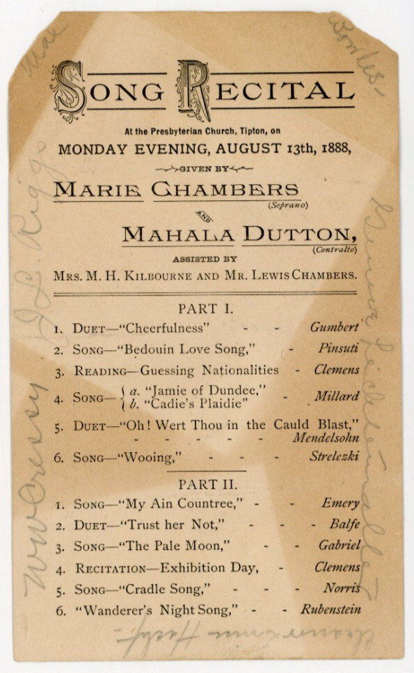 1888 Marie Chambers Mahala Dutton Song Recital Program #KT