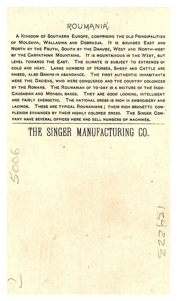 1892 Singer Manufacturing Trade Card - Roumania