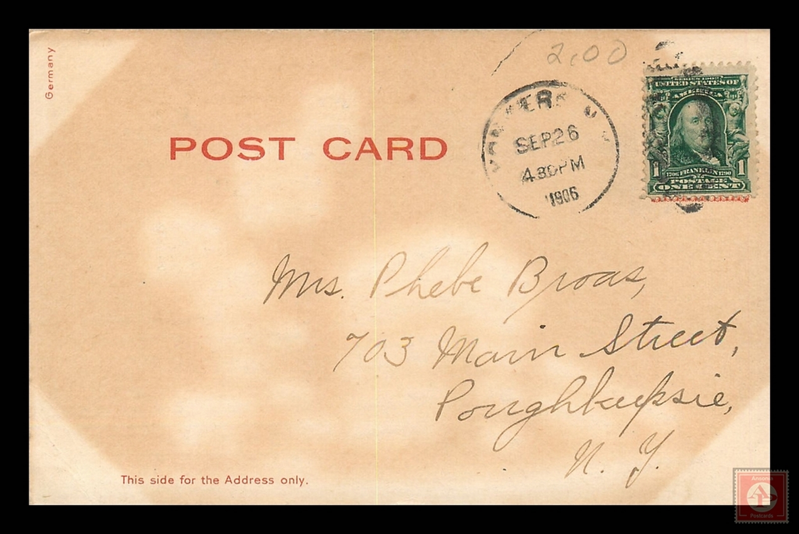 Some scans of postcards result in colored streaks which are a result of the error in scanning and not a fault of the postcard.