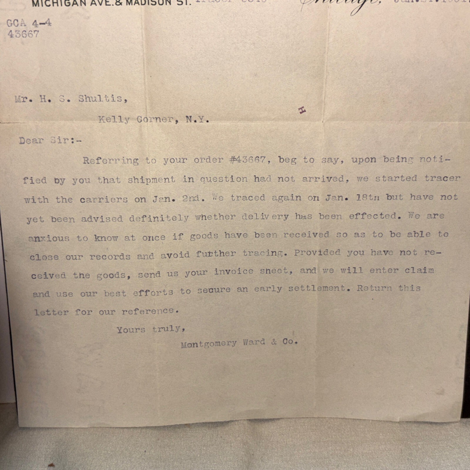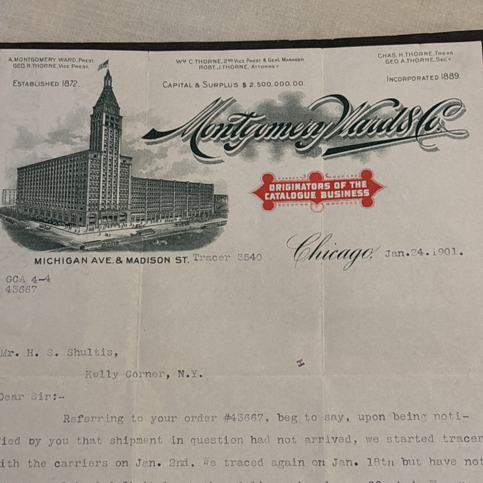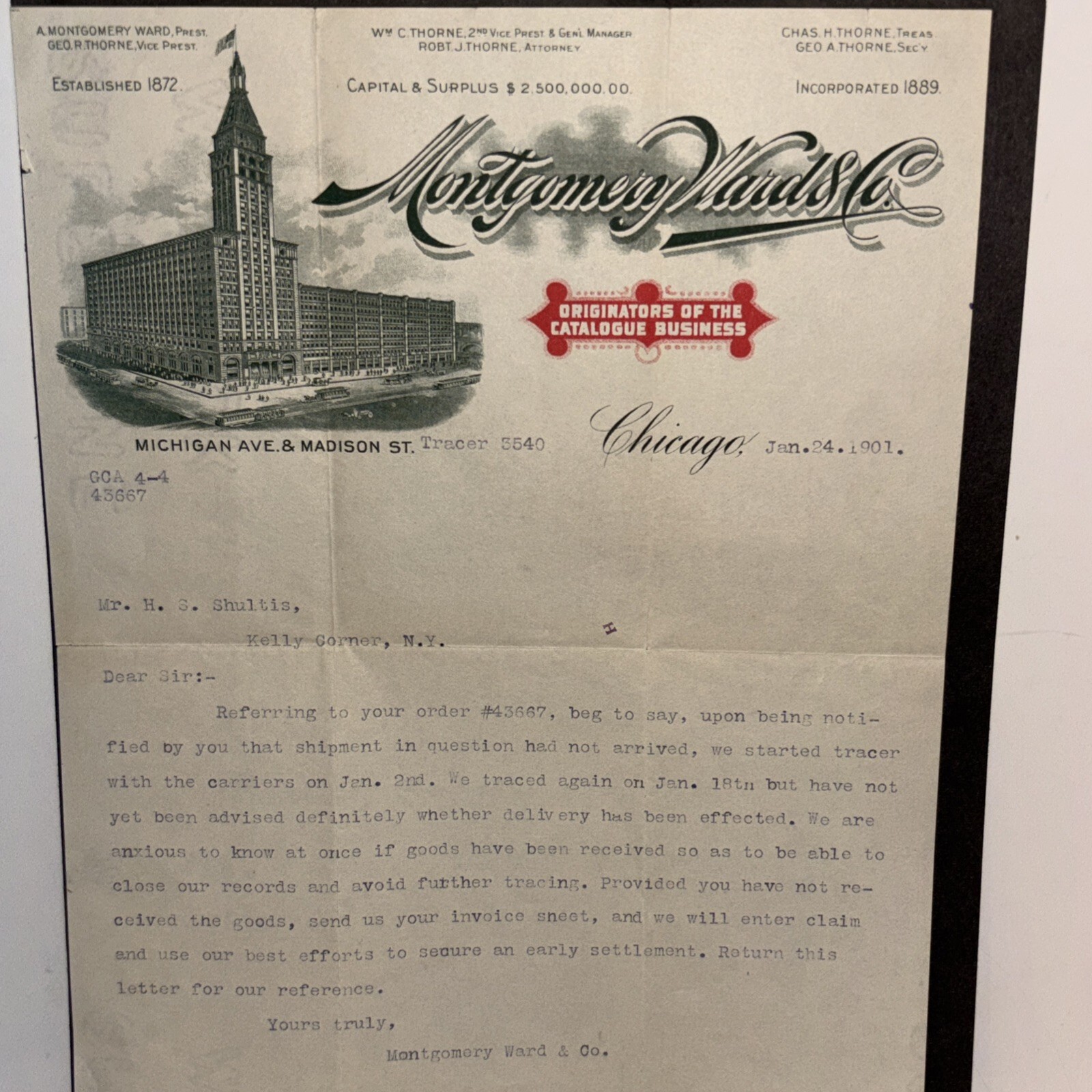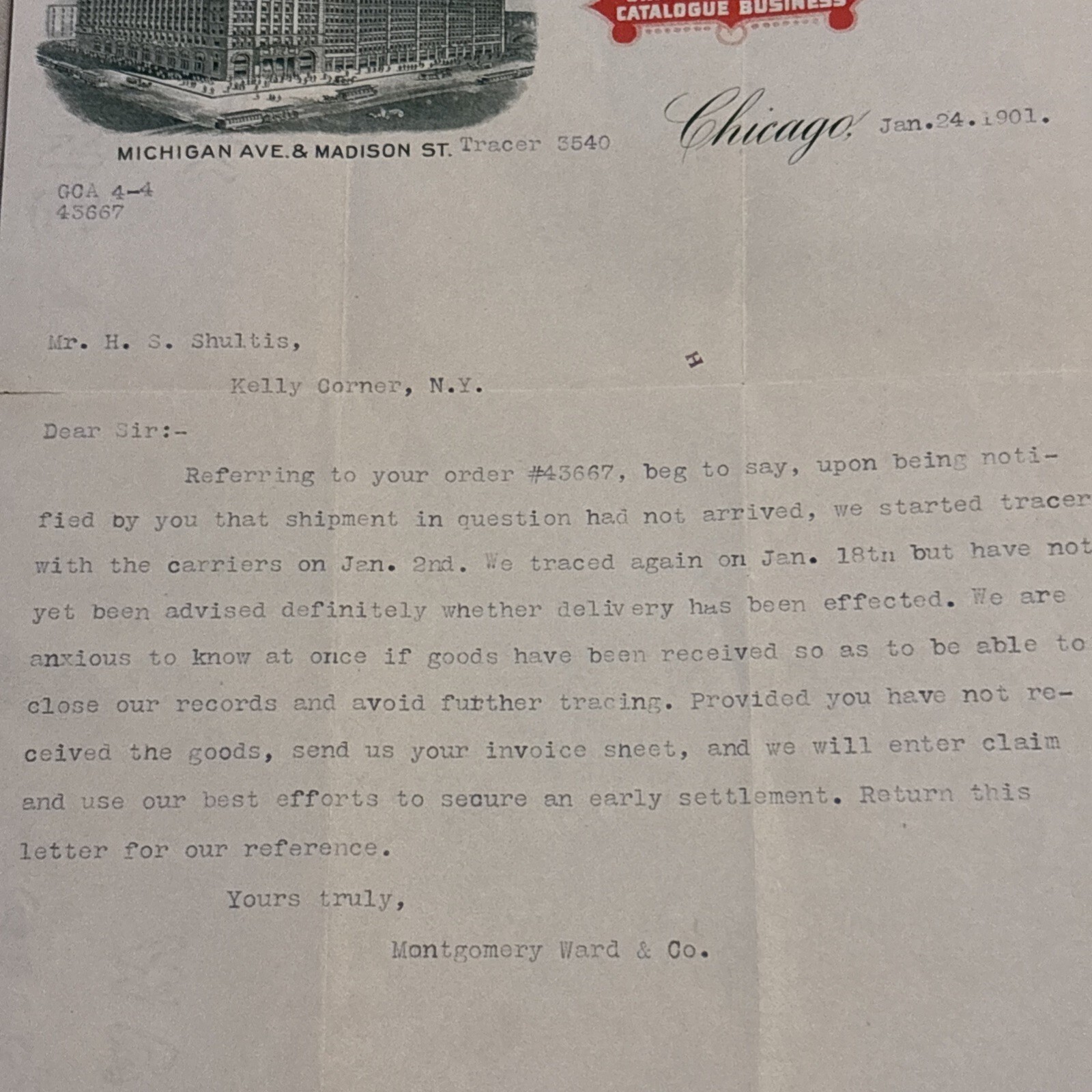1901 Montgomery Ward & Co Letter Regarding Missing Shipment