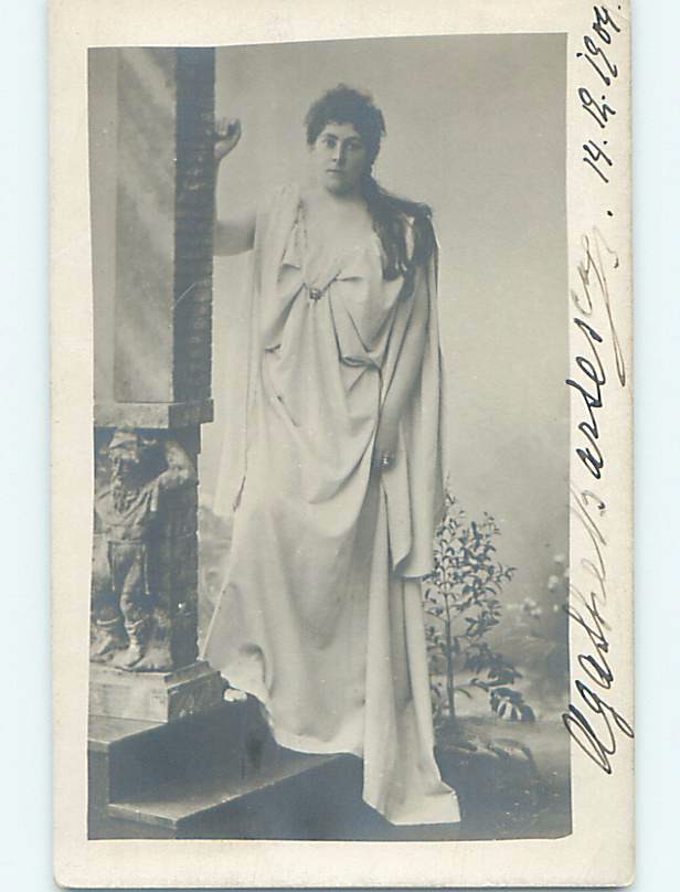 1904 rppc risque SEXY WOMAN POSING BESIDE STATUE ON COLUMN HM1139