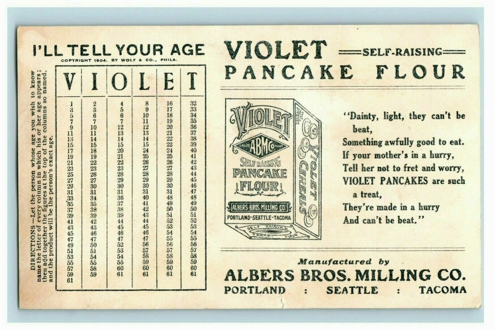 1904 Violet Pancake Flour Age Guessing Game On Back #1 P128
