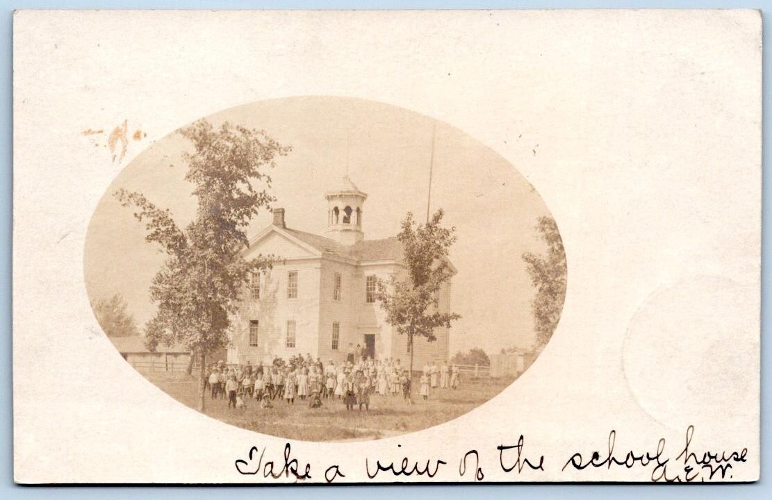 1905 RPPC SCHOOLHOUSE STUDENTS ON LAWN HURON OHIO POSTMARK POSTCARD