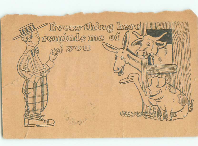 1906 Comic MAN WITH FARM ANIMALS AB9004