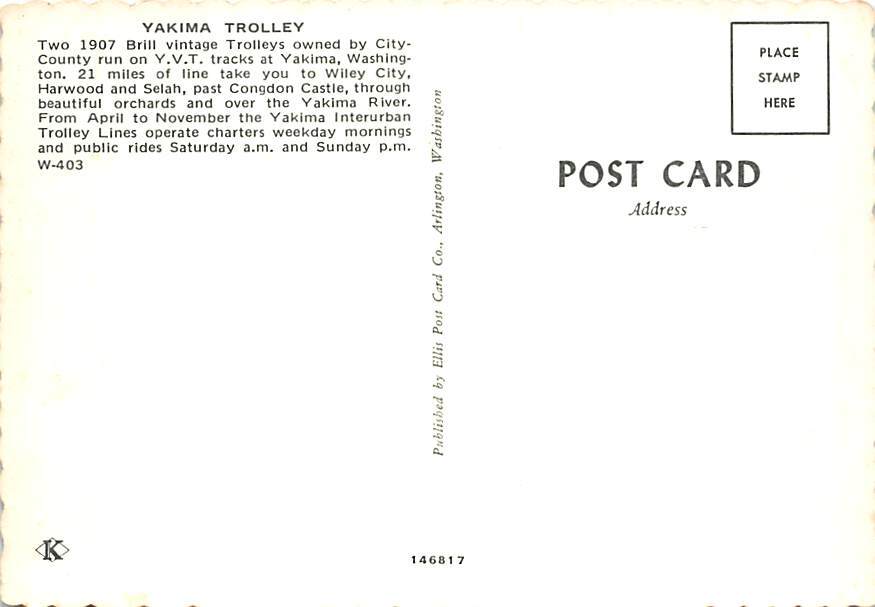 1907 Brill Vintage Trolley Yakima, Washington Postcard
