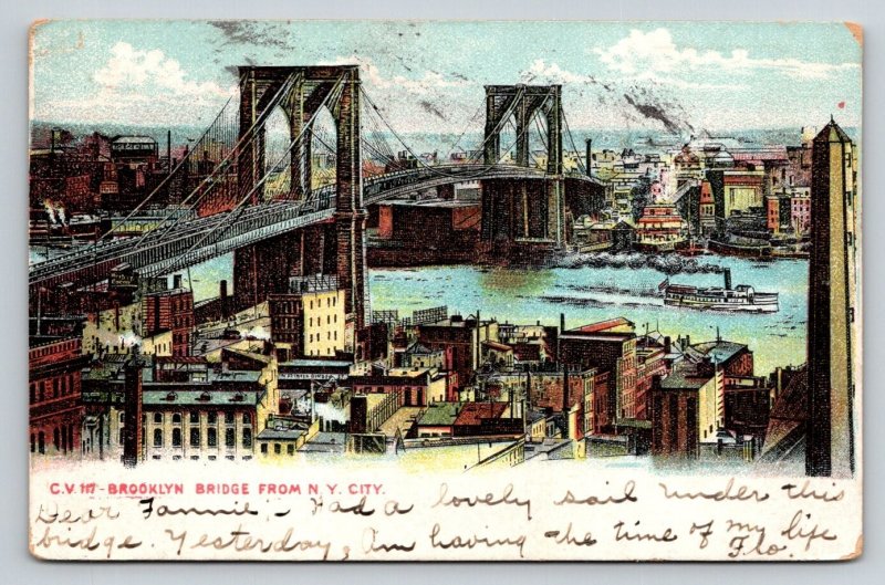 1907 Brooklyn Bridge New York City Postcard
