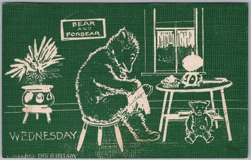 1907 D. Hillson Bear & Forbear Wednesday Anthropomorphic Teddy Bear Postcard H83