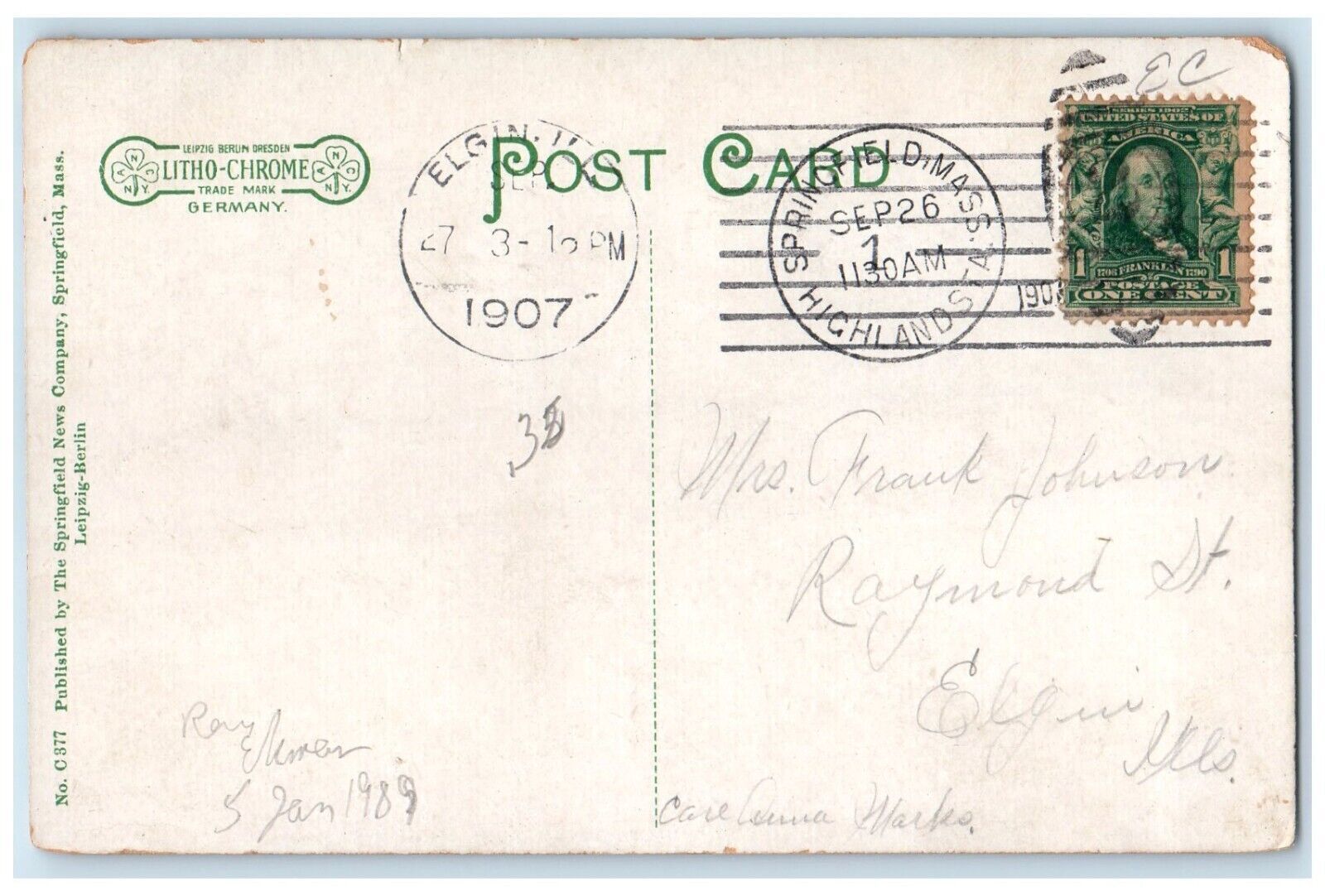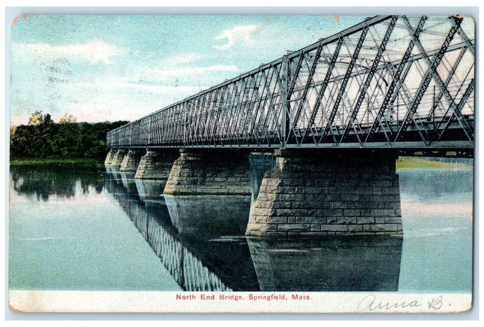 1907 North End Bridge Springfield Massachusetts MA Elgin IL Antique Postcard