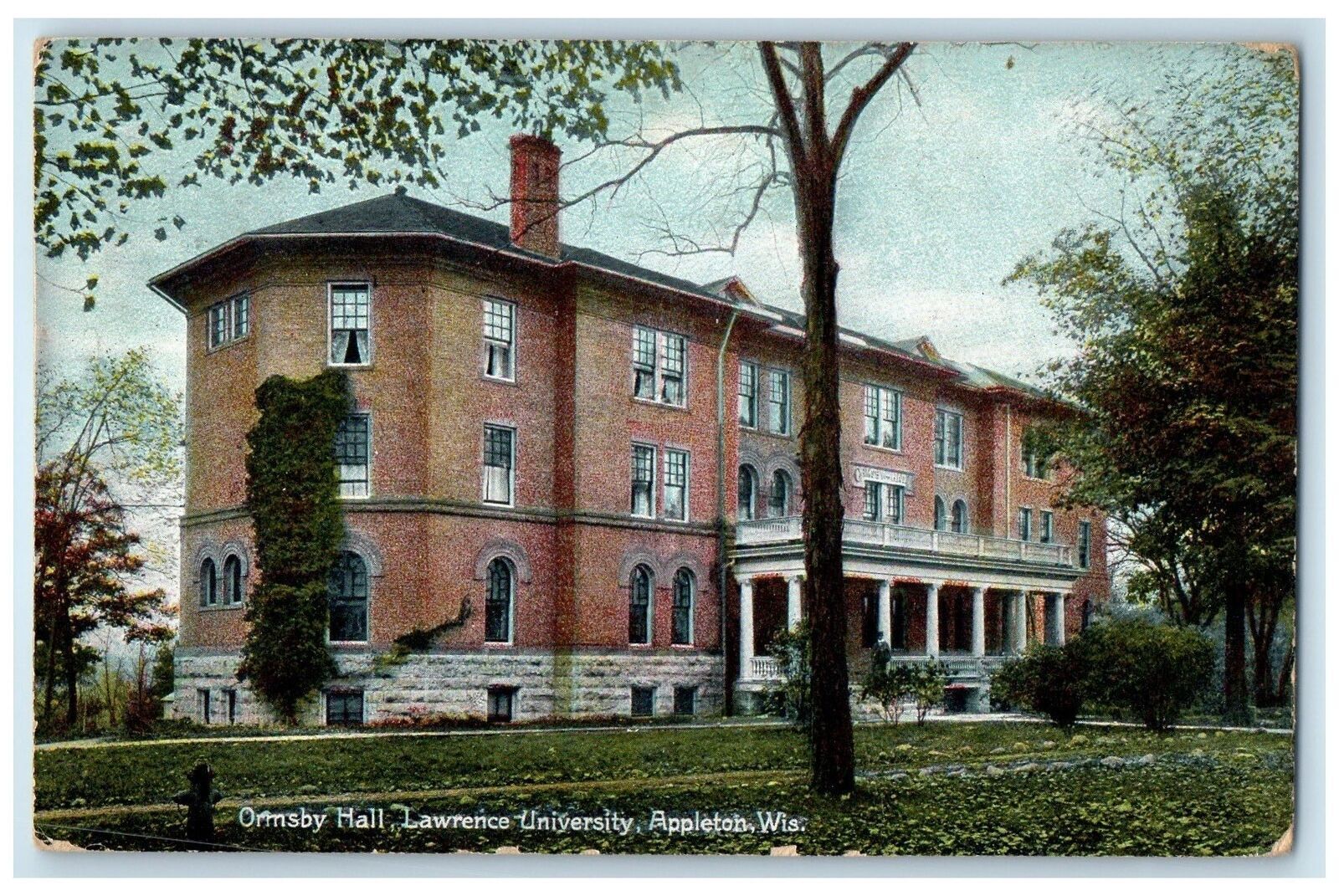 1907 Ormsby Hall Lawrence University Building Road Appleton Wisconsin Postcard