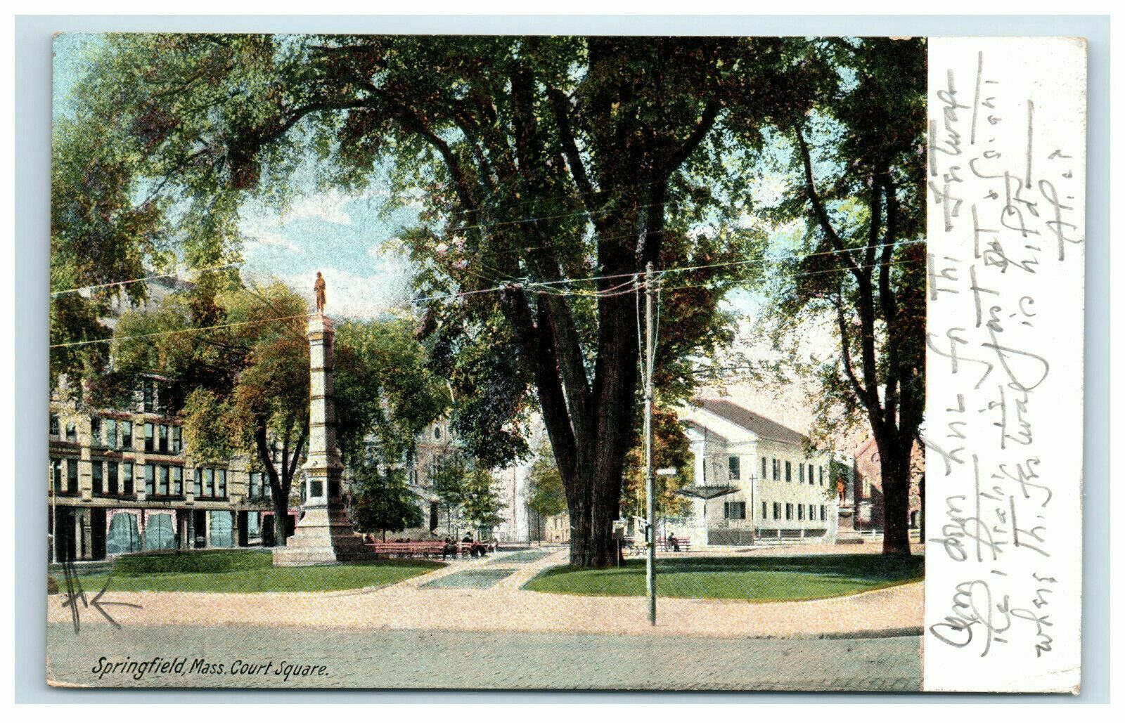 1907 Springfield MA Court Square Postcard Massachusettes
