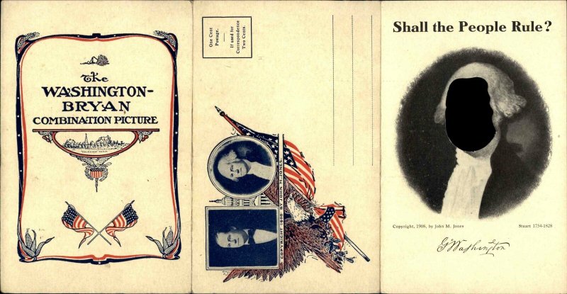1908 Campaign William Jennings Bryan George Washington Mechanical Postcard