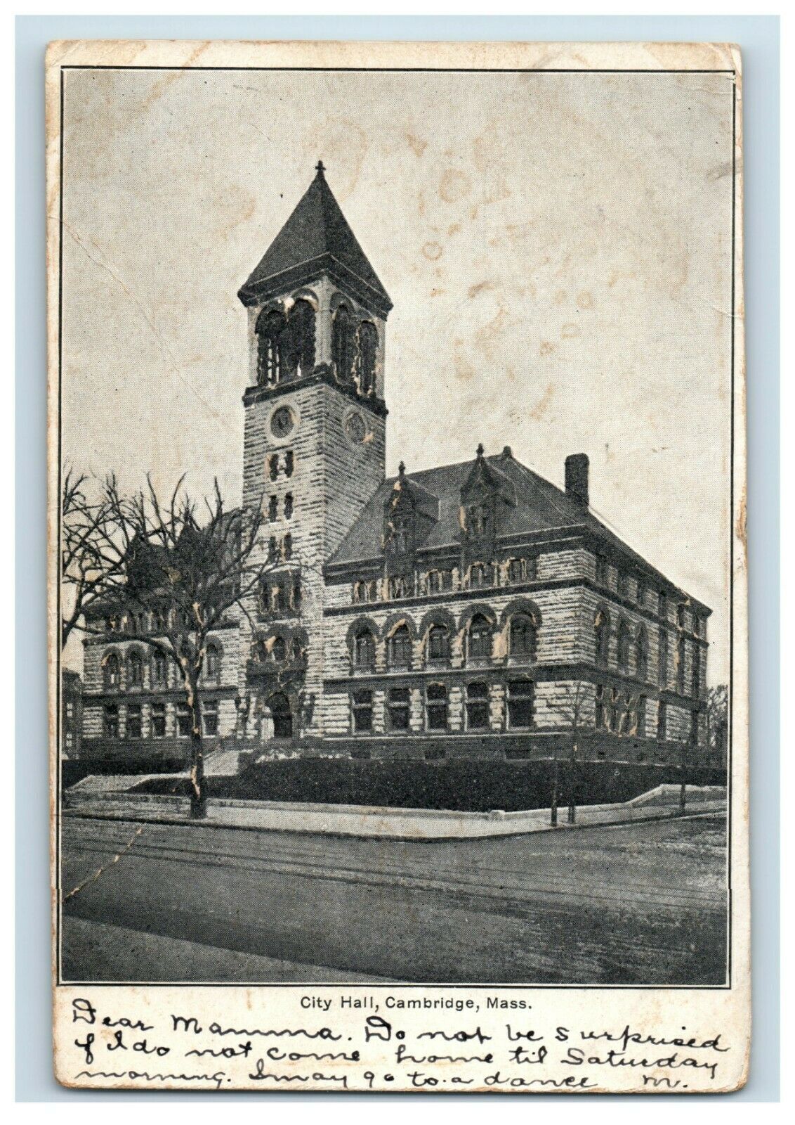 1908 Heavily Embossed City Hal, Cambridge, MA Postcard P169
