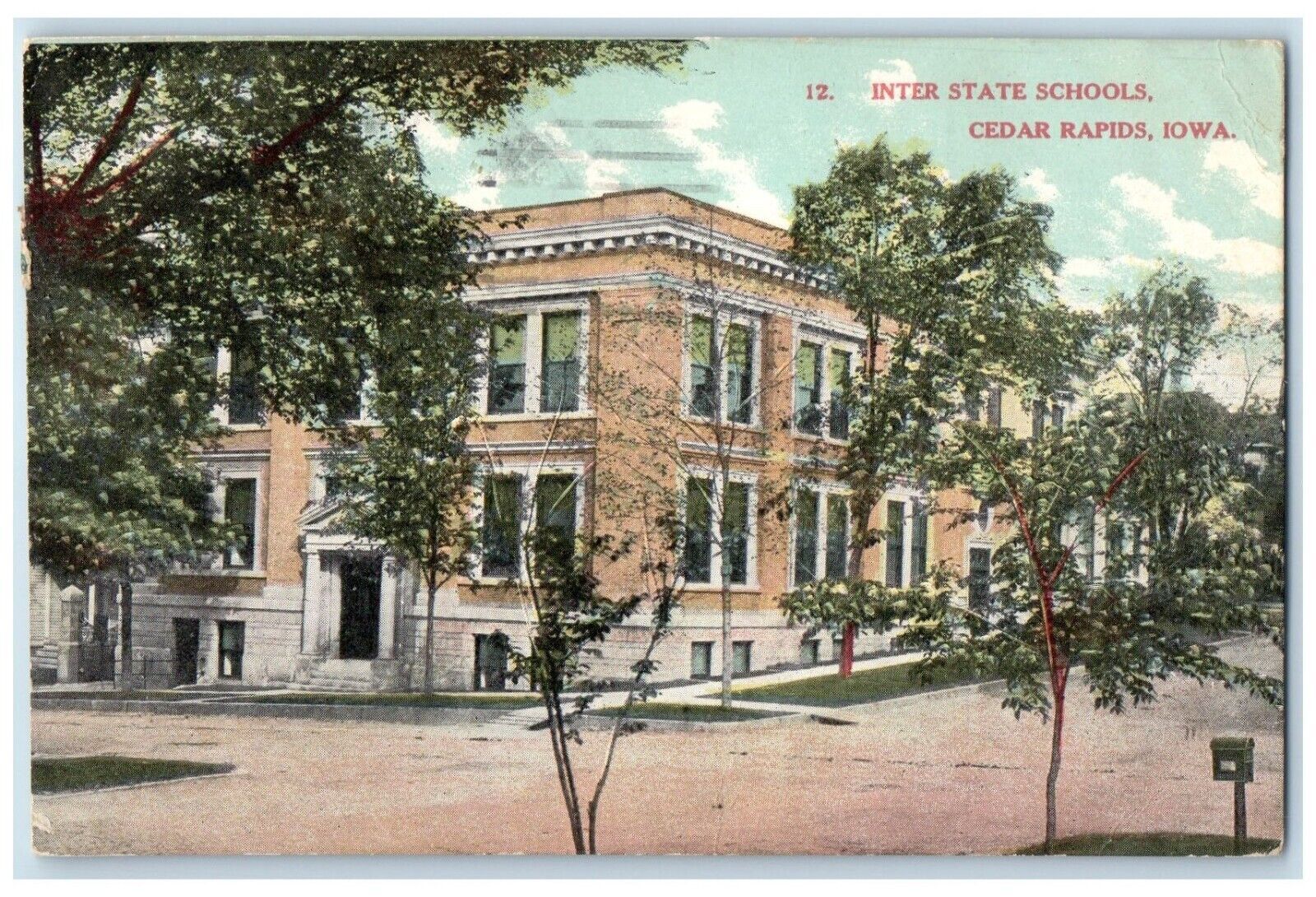 1908 Interstate Schools Exterior Building Cedar Rapids Iowa IA Vintage Postcard