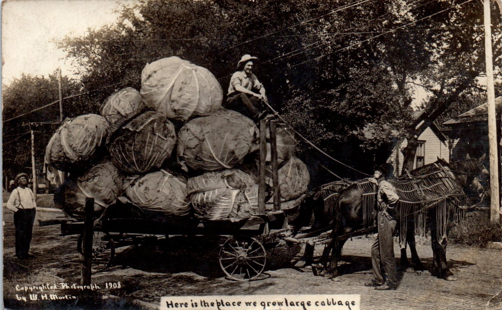 1908 We Grow Large Cabbage Exaggeration Real Photo Postcard