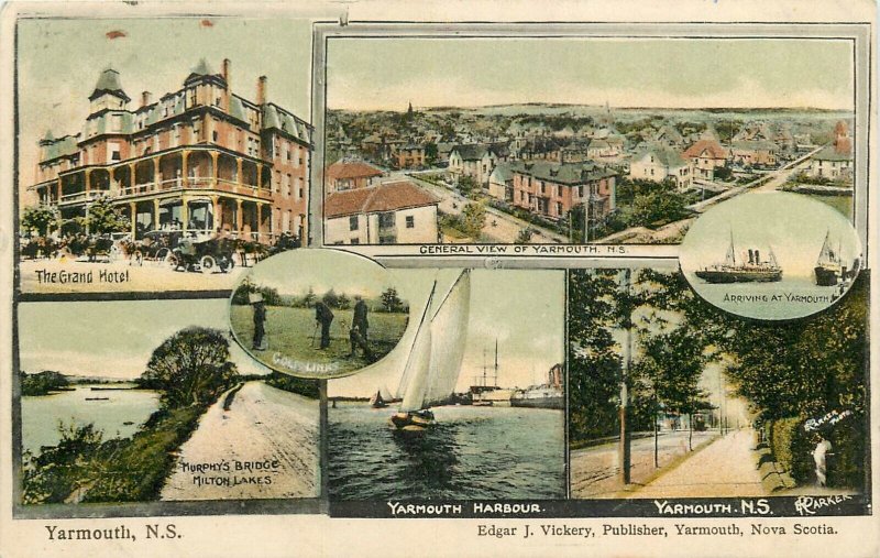 1908 Yarmouth Nova Scotia Canada Vickery Multi View Postcard 24-10221
