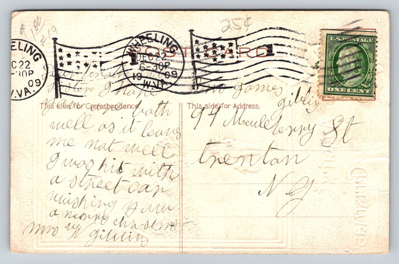 1909 A Merry Christmas Wheeling West Virginia Postcard