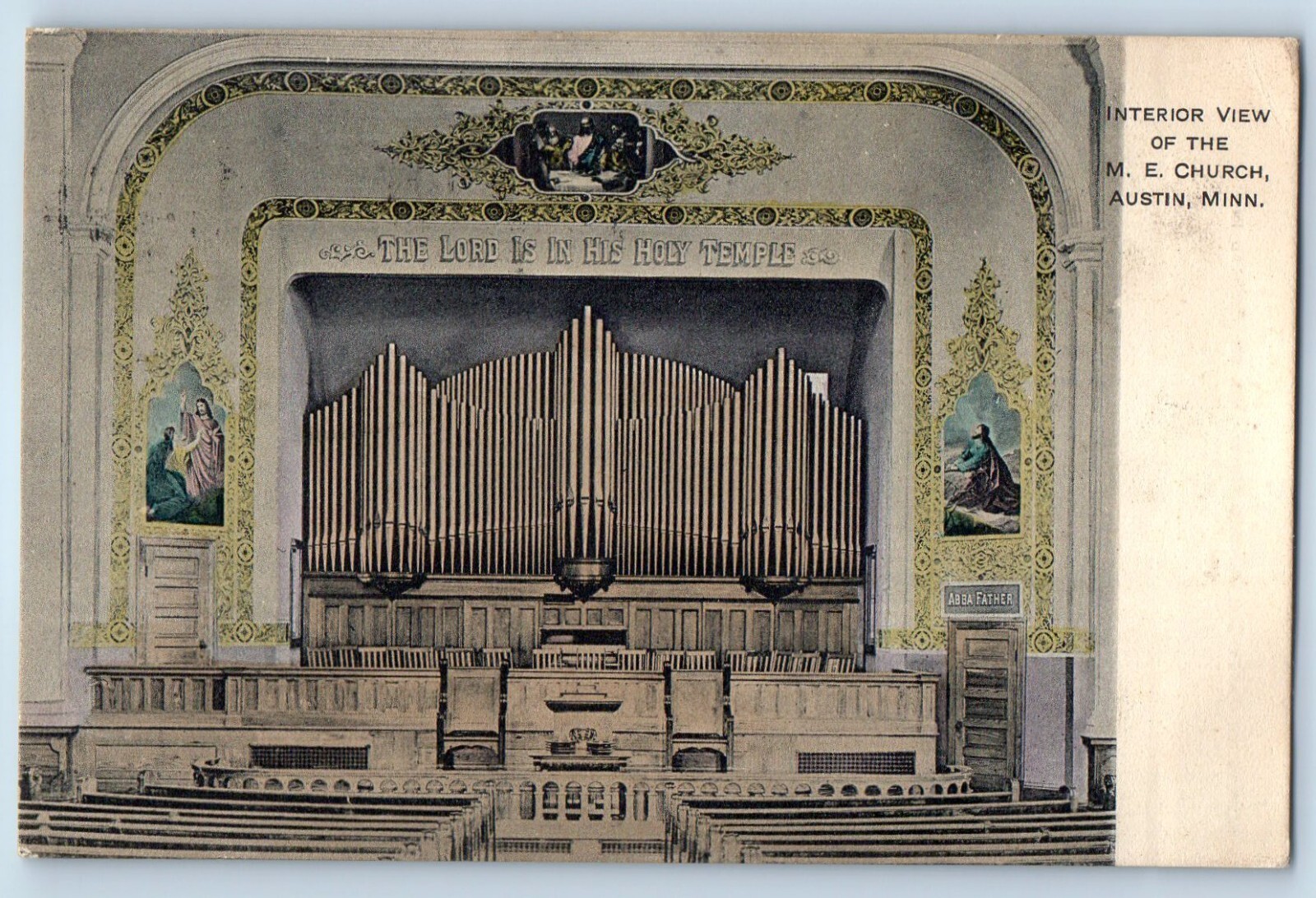 1909 Austin Minnesota Postcard Interior View Methodist Episcopal Church Interior