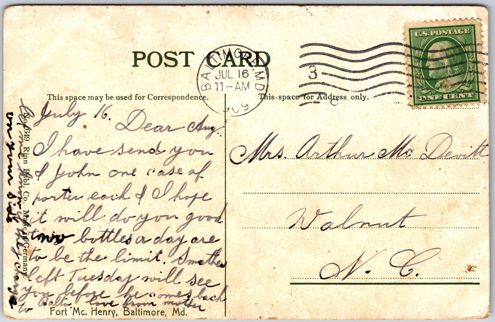 1909 Fort McHenry Baltimore Maryland MD Posted Postcard