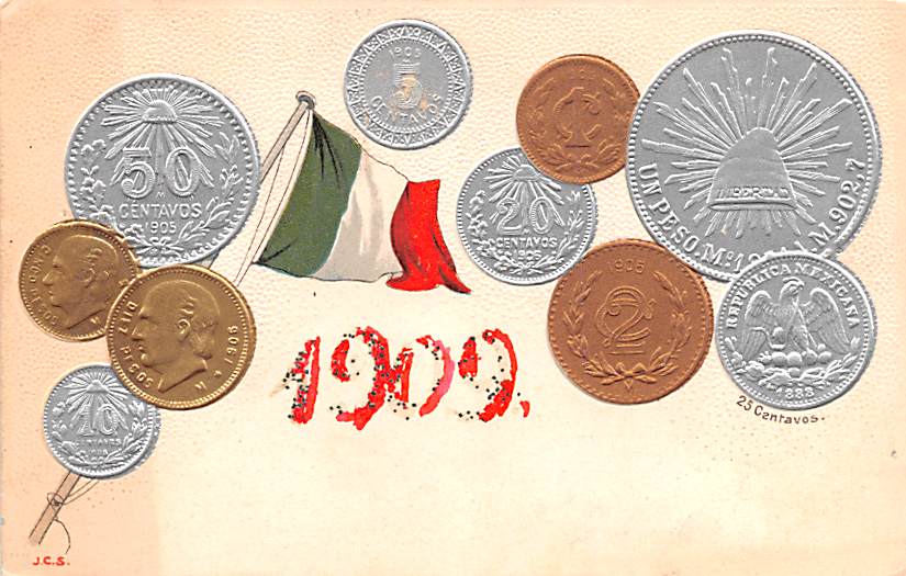 1909 Mexico Coin Postcard ,