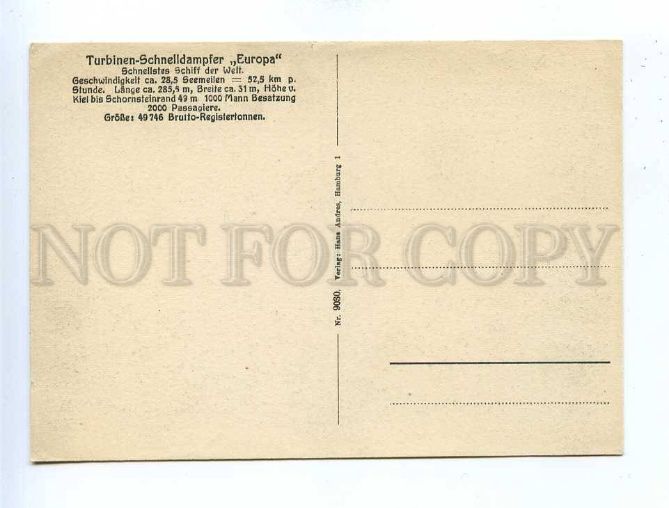 Germany Ship Europa Vintage Postcard Vintage original old postcard In excellent condition, for more information, see scans please. Publisher Andres Hamburg #9030. Approx.Size: 6X4 inches (15X10 cm) We send only by a ... Read More