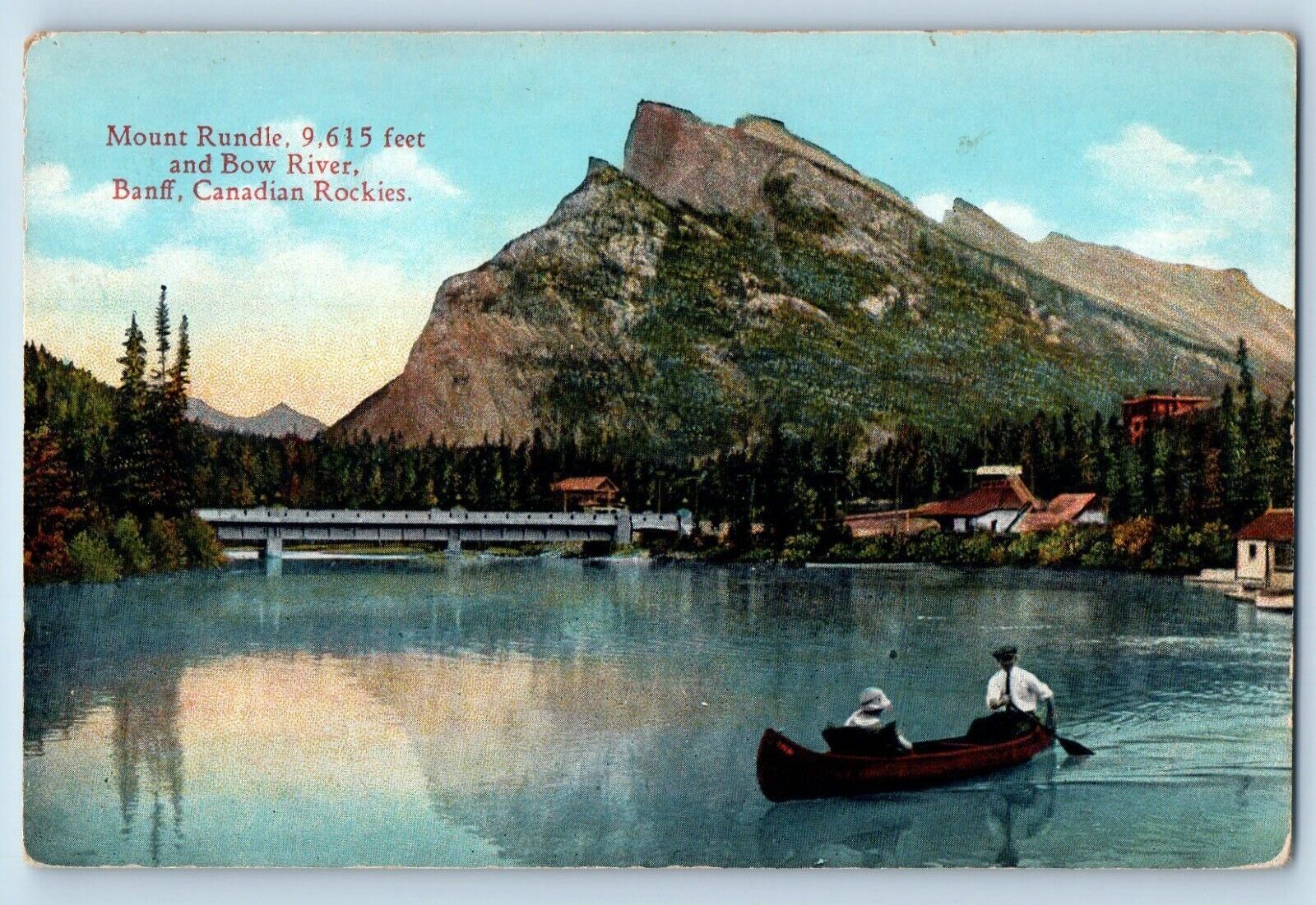 1910 Banff British Columbia Canada Postcard Mount Rundle Bow River Exterior View