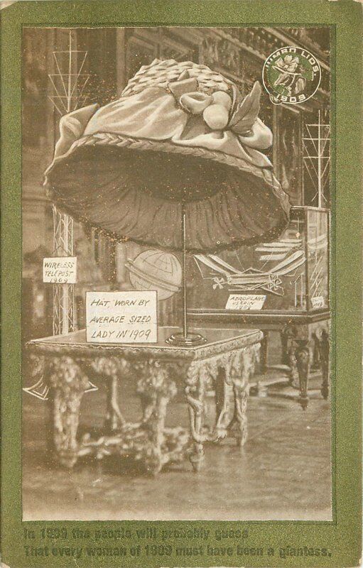 1910 Big Hat Exaggeration Globe Comic Humor artist impression Postcard 22-6439