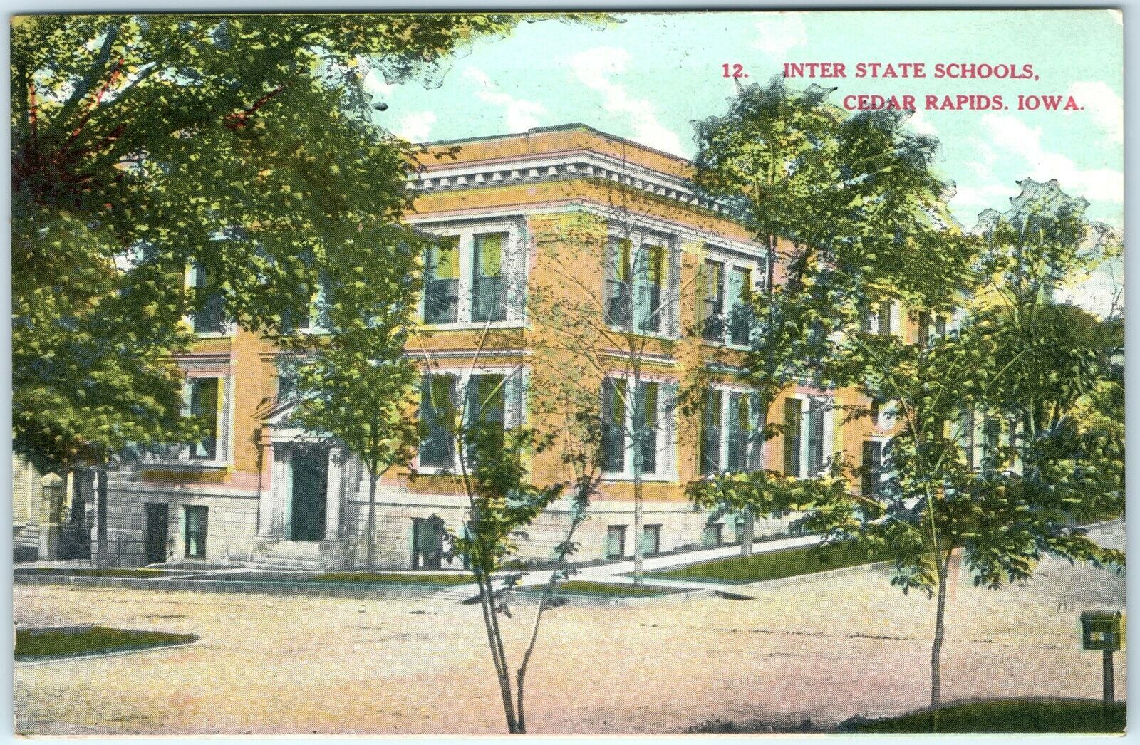 1910 Cedar Rapids, IA Inter State School Litho Photo Postcard High Building A36