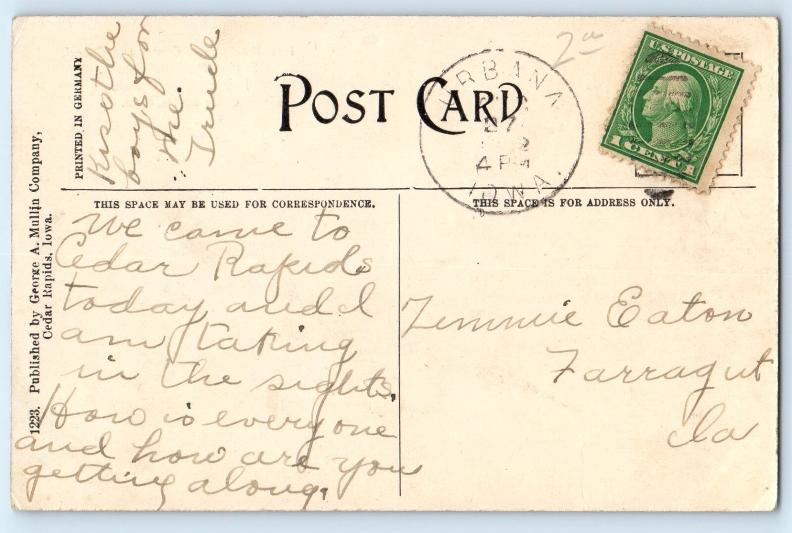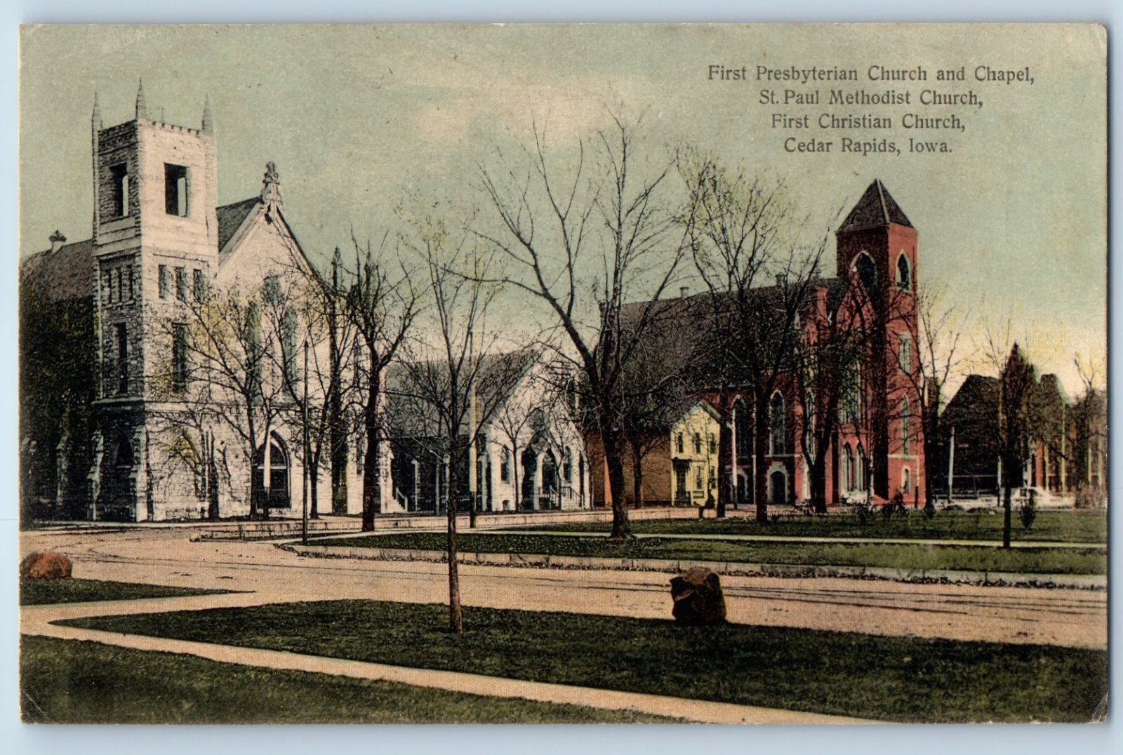 1910 Cedar Rapids Iowa Postcard First Presbyterian Church Chapel St. Paul Method